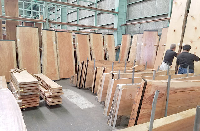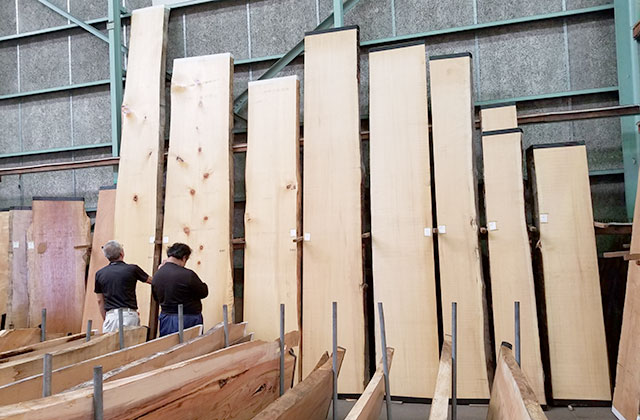 材木屋に足を運び、お客様の住まいには「どのような木がいいか」「どのような木目なら住まいにマッチするか」などを考えて仕入れています。